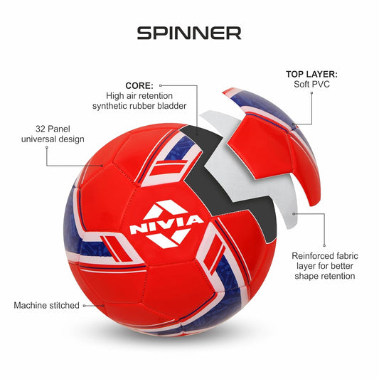 Nivia Spinner Maschinengenähter Fußball (England), 32-Panel-Fußball, PVC-genähter Fußball, Fußball für Training, Freizeit, Anfänger, Fußball, Fußballgröße – 5 (Mehrfarbig)