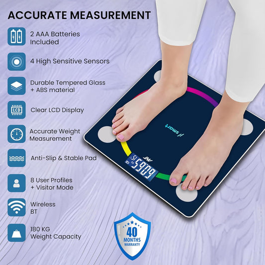 Ant Esports Flora Smart Scale, digitale Personenwaage, Genauigkeit bis auf 0,1 kg, Körpergewicht- und Fettmonitor, Muskel-BMI, elektronischer Körperzusammensetzungsmonitor mit Bluetooth, 180 kg Tragkraft, schwarz