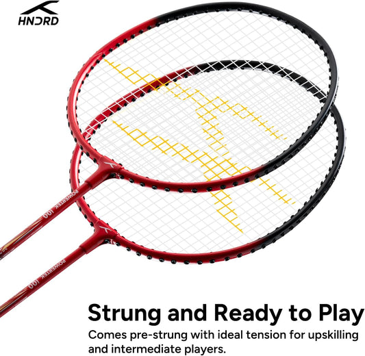 Power Meets Precision.HUNDRED POWERTEK 100 (2er-Set) Badmintonschläger mit Vollschutzhülle (115 g, rot/schwarz)