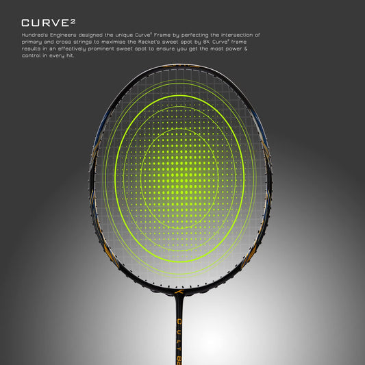 Precision. Power. Control.Hundred Cult 82 Badmintonschläger aus Carbonfaser (unbespannt) mit kompletter Schlägerhülle für fortgeschrittene Spieler