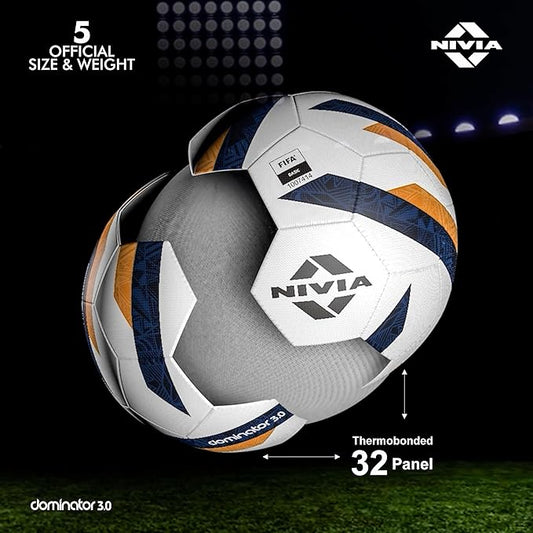 • Nivia Dominator 3.0 Fußball, Spielball, 32 Felder, strapazierfähiges & weiches PU-Leder, Butyl-Gewebe verletzte Blase, FIFA Basic, zum Spielen auf natürlichem und künstlichem Rasen (Multicolor, Größe - 5)