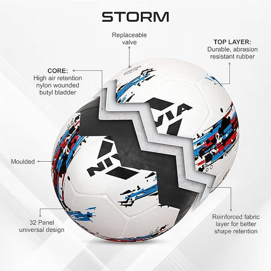 Nivia-Sturm-Fußball, nach Grundnorm, Trainingsball, 32 Felder, strapazierfähige Gummiummantelung, Blase mit Butylfaden, zum Spielen auf hartem Boden